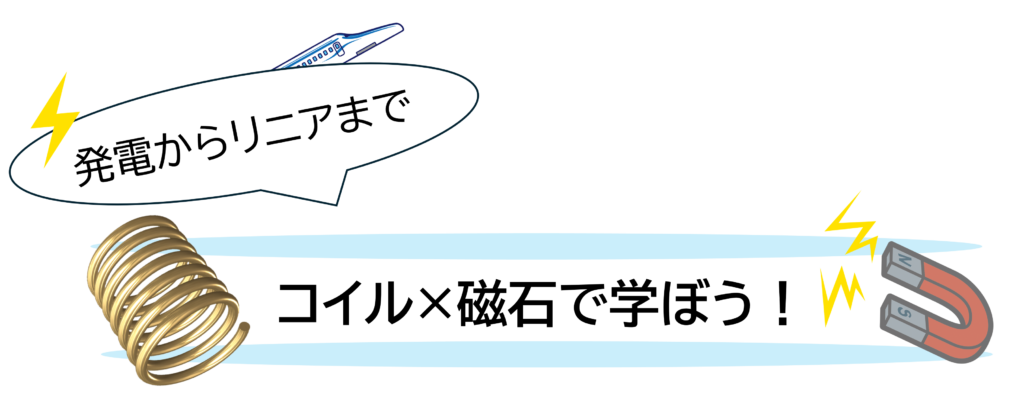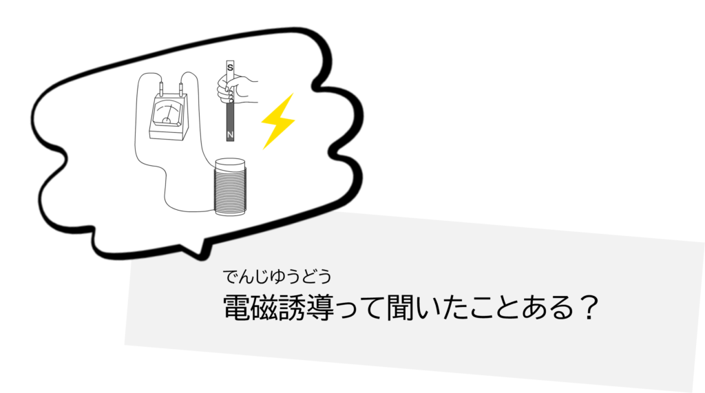 たとえば、コイル(ぐるぐる巻いた線)の近くで磁石を動かすと、コイルの中に電気が流れます。