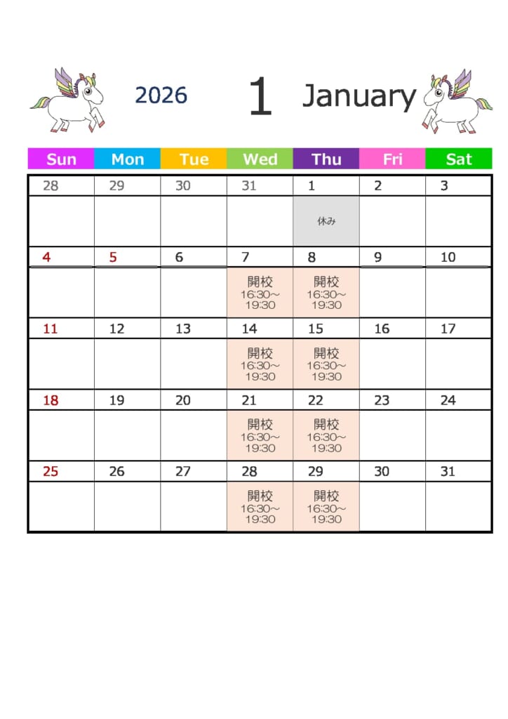開校曜日:毎週水曜日・木曜日(祝日はお休みします)