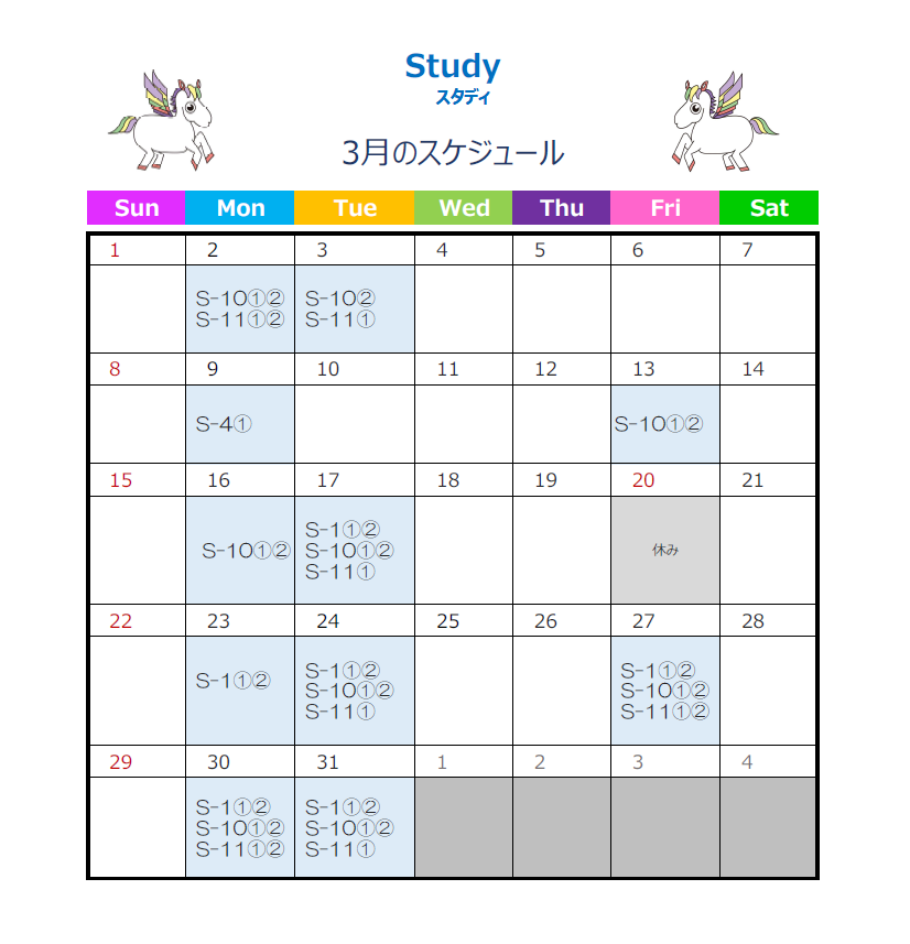 【Study(スタディ)】開講カレンダー